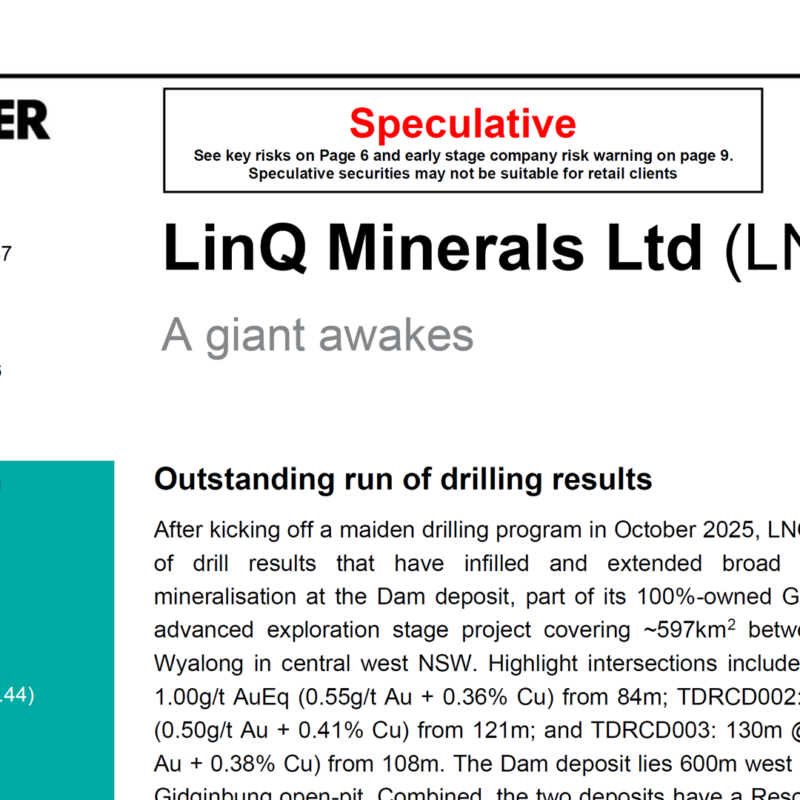 - Middle: LinQ Minerals Confirms Shallow Gold-Copper Continuity with 142m at 1.01g/t Au Eq at Dam